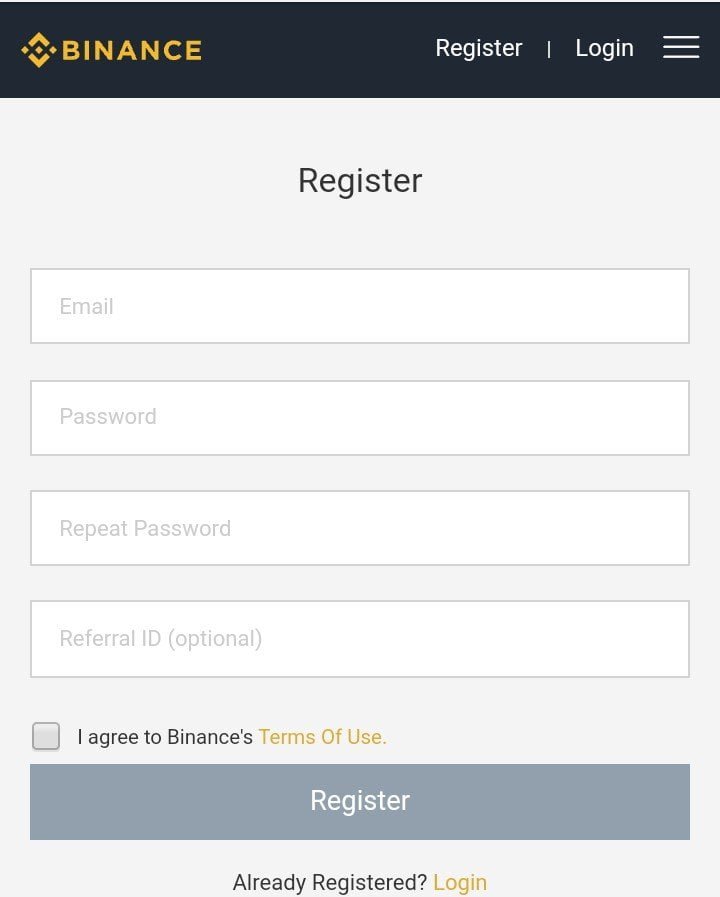 Input your email, password and use 25301318 as your Referral ID?. Then agree with Binance Terms Of Use. After that you click register and proceed. You will be prompted to confirm your email. After confirming your email. You are good to go with Binance.